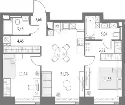 30 430 096 ₽3-к.квартира, 61.68 м², 12 эт.
