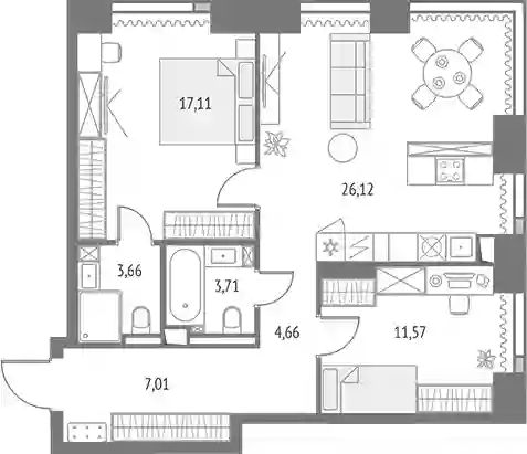 31 612 606 ₽3-к.квартира, 67.8 м², 26 эт.