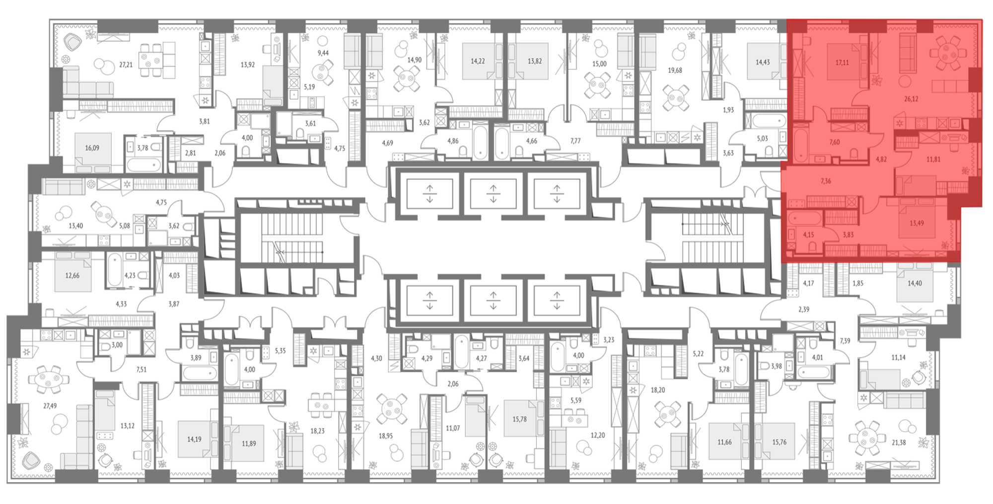 4-к.квартира, 96.29 м², 34 эт. в ЖК Upside Towers Корпус Атлас