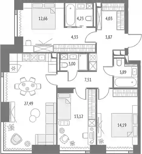 4-к.квартира, 98.32 м², 6 эт. в ЖК Upside Towers Корпус Атлас