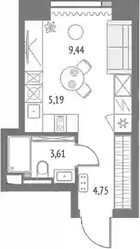19 215 495 ₽Студия, 23.4 м², 4 эт.