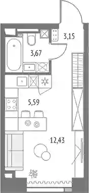 Студия, 24.84 м², 6 эт. в ЖК Upside Towers Корпус Атлас