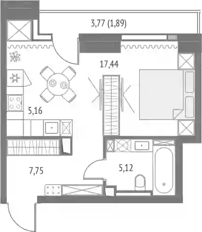 22 852 768 ₽2-к.квартира, 38.9 м², 45 эт.