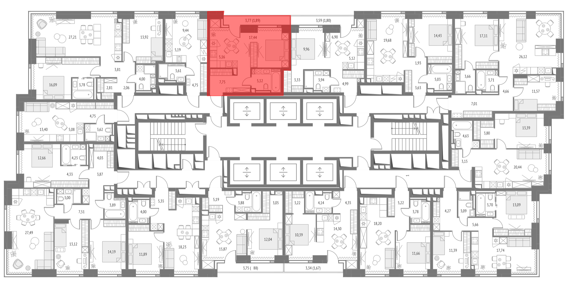 42 377 164 ₽3-к.квартира, 73.68 м², 33 эт.