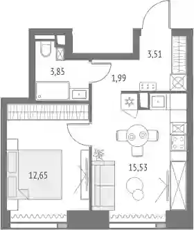 2-к.квартира, 37.53 м², 17 эт. в ЖК Upside Towers Корпус Монблан