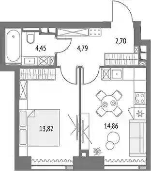 23 832 733 ₽2-к.квартира, 42.79 м², 17 эт.