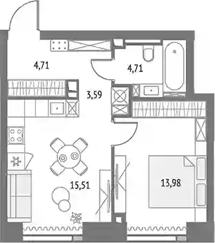 25 161 800 ₽2-к.квартира, 38.91 м², 15 эт.