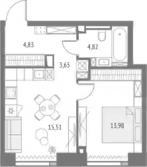 2-к.квартира, 42.79 м², 5 эт. в ЖК Upside Towers Корпус Монблан