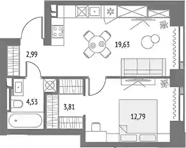 24 663 679 ₽2-к.квартира, 44.09 м², 29 эт.