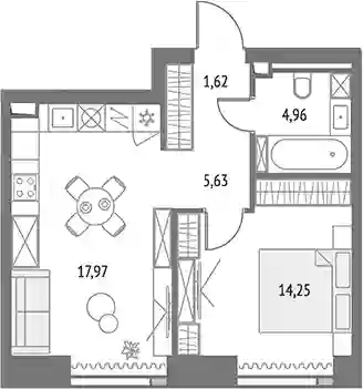 24 417 135 ₽2-к.квартира, 42.29 м², 24 эт.