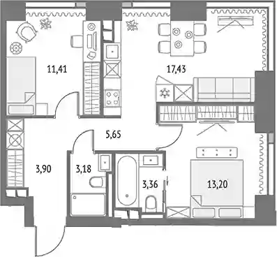 34 579 604 ₽3-к.квартира, 63.49 м², 13 эт.