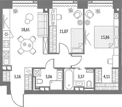30 567 140 ₽3-к.квартира, 61.68 м², 13 эт.