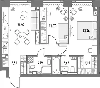 30 567 140 ₽3-к.квартира, 61.68 м², 13 эт.