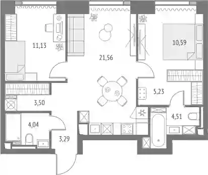 34 579 604 ₽3-к.квартира, 63.49 м², 13 эт.