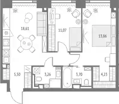 30 567 140 ₽3-к.квартира, 61.68 м², 13 эт.