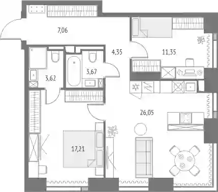 26 143 390 ₽2-к.квартира, 43.69 м², 20 эт.