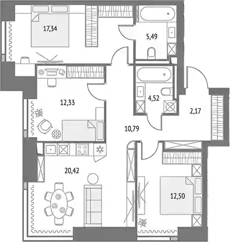 45 401 117 ₽4-к.квартира, 86.47 м², 42 эт.