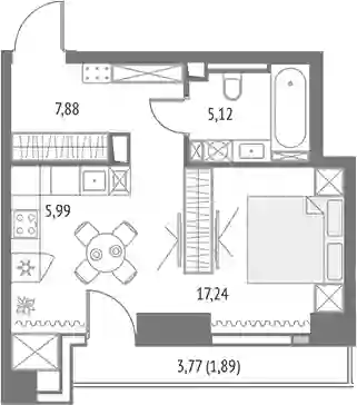 23 737 644 ₽2-к.квартира, 42.79 м², 12 эт.