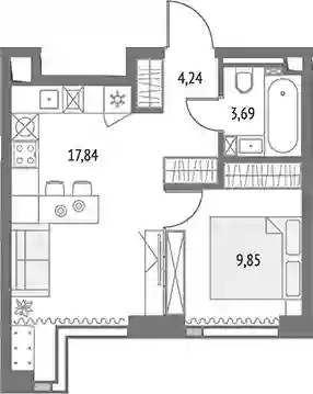 26 978 712 ₽2-к.квартира, 35.25 м², 9 эт.