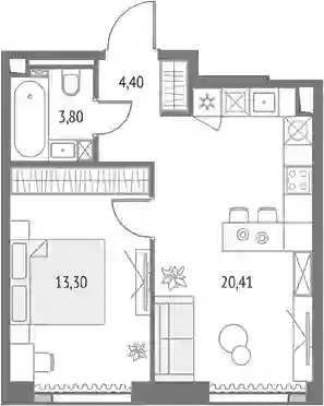 26 519 749 ₽2-к.квартира, 41.78 м², 4 эт.
