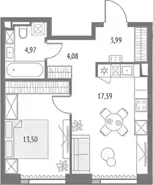 2-к.квартира, 43.93 м², 17 эт. в ЖК Upside Towers Корпус Олимп