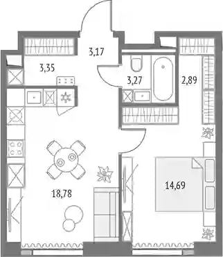 2-к.квартира, 46.15 м², 5 эт. в ЖК Upside Towers Корпус Олимп