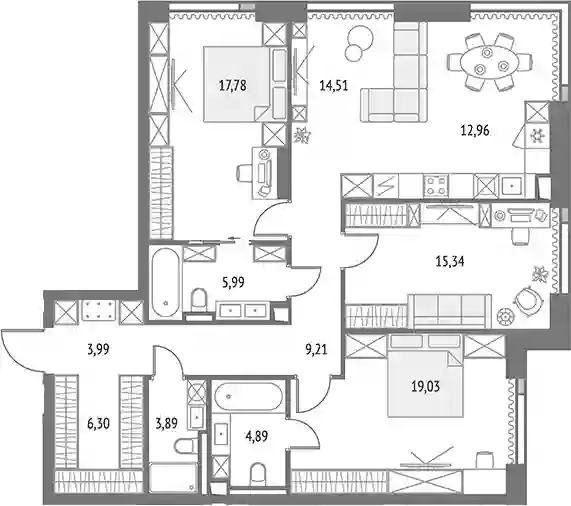 4-к.квартира, 113.89 м², 9 эт. в ЖК Upside Towers Корпус Олимп