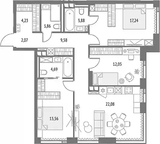 43 724 123 ₽4-к.квартира, 86.47 м², 43 эт.