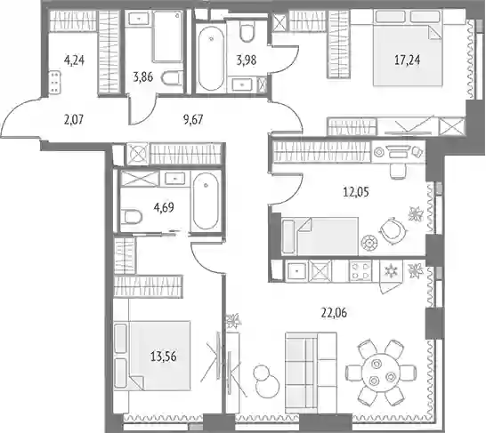 43 724 123 ₽4-к.квартира, 86.47 м², 43 эт.