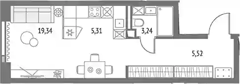 19 338 545 ₽Студия, 32.4 м², 27 эт.