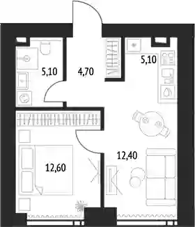 2-к.квартира, 39.9 м², 19 эт. в ЖК Upside Towers Корпус Эльбрус