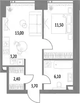 23 737 644 ₽2-к.квартира, 42.79 м², 12 эт.