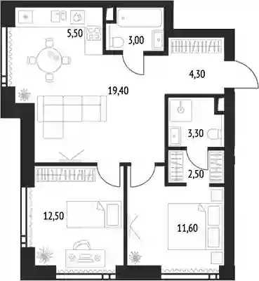 34 520 444 ₽3-к.квартира, 60.8 м², 4 эт.