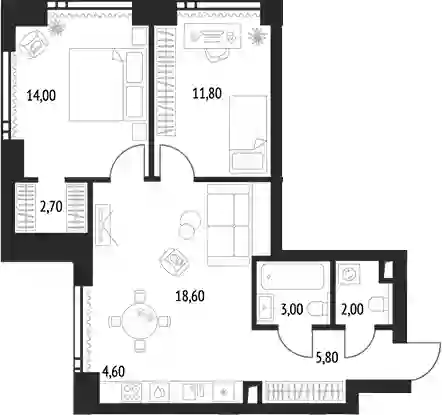 39 131 071 ₽3-к.квартира, 69.9 м², 38 эт.