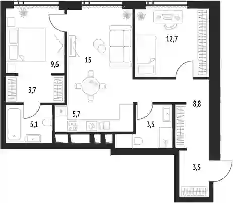 34 803 060 ₽3-к.квартира, 61.68 м², 15 эт.