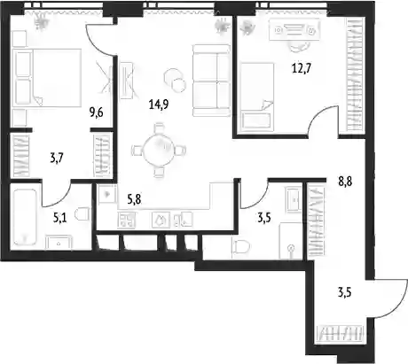 34 472 907 ₽3-к.квартира, 61.68 м², 5 эт.
