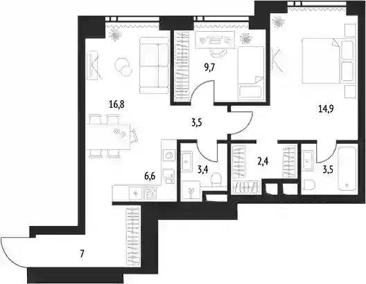 34 832 414 ₽3-к.квартира, 64.3 м², 42 эт.