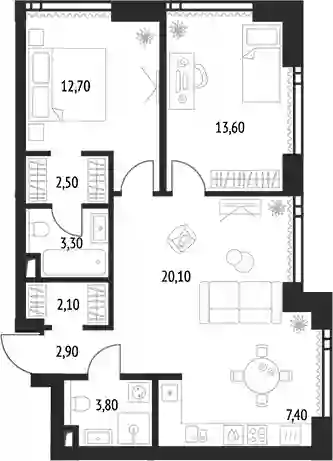 41 290 570 ₽3-к.квартира, 73.68 м², 36 эт.