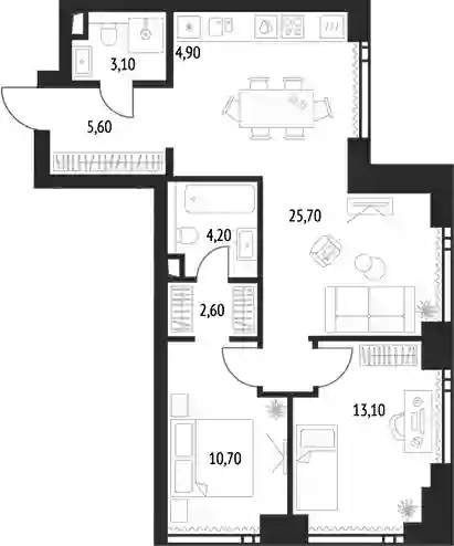 3-к.квартира, 70.9 м², 35 эт. в ЖК Upside Towers Корпус Эльбрус