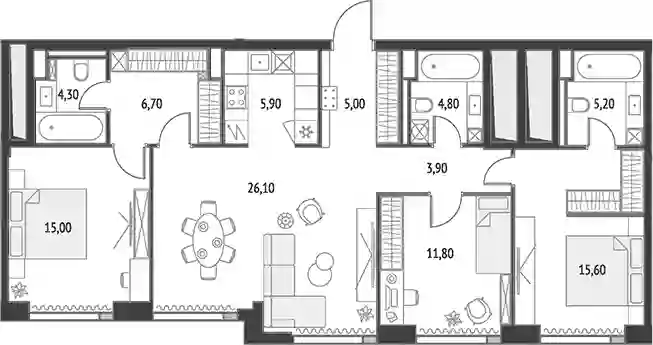 4-к.квартира, 104.3 м², 54 эт. в ЖК Upside Towers Корпус Эльбрус