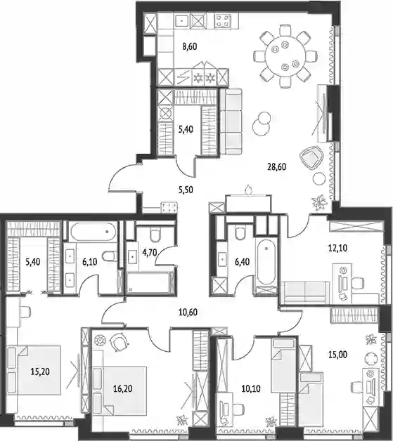 116 485 600 ₽4-к.квартира, 155.6 м², 15 эт.