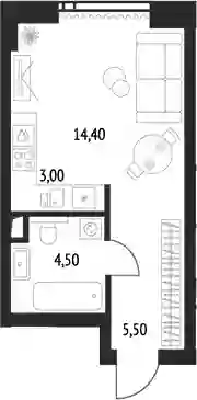21 164 040 ₽Студия, 27.5 м², 43 эт.