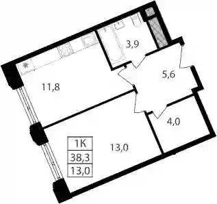 1-к.квартира, 38.3 м², 4 эт. в ЖК Варшавские ворота Корпус 2