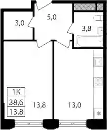12 596 608 ₽1-к.квартира, 38.6 м², 9 эт.