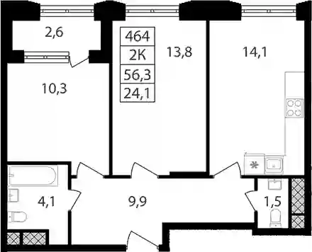 16 074 213 ₽2-к.квартира, 53.7 м², 6 эт.