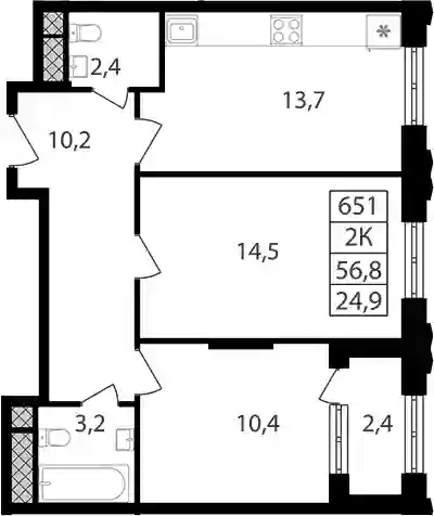 17 331 015 ₽2-к.квартира, 61 м², 24 эт.
