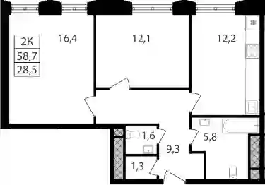 2-к.квартира, 58.7 м², 9 эт. в ЖК Варшавские ворота Корпус 2