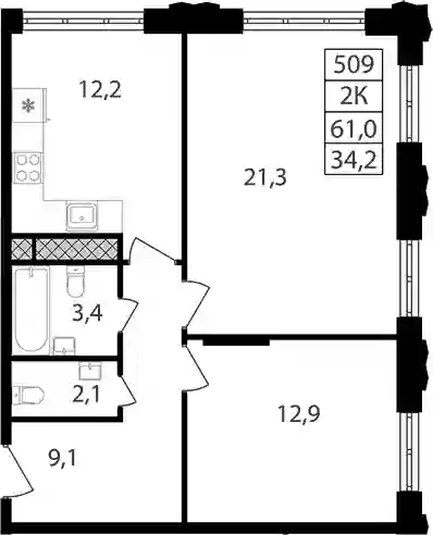 18 750 680 ₽3-к.квартира, 65.8 м², 9 эт.