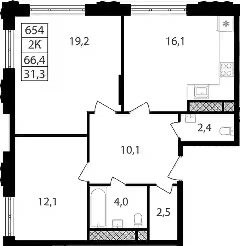 66.4 м2