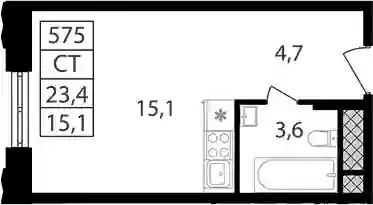 9 882 124 ₽Студия, 23.4 м², 24 эт.